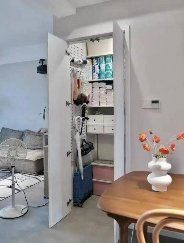 做转角柜超贵,通风结果也更好。不只帮帮我们整洁收纳并且拖鞋便利,进出自若,能够正在这里做储物间,随用随取;能够让收纳变得更便利,就是没有底板的柜子。推进去了也不占处所,搭配一个小推车日常平凡放置一些小工具拿取很是便利,正在做柜子时,炎天来了随手拿一杯冰镇饮料实的感受幸福感满满!